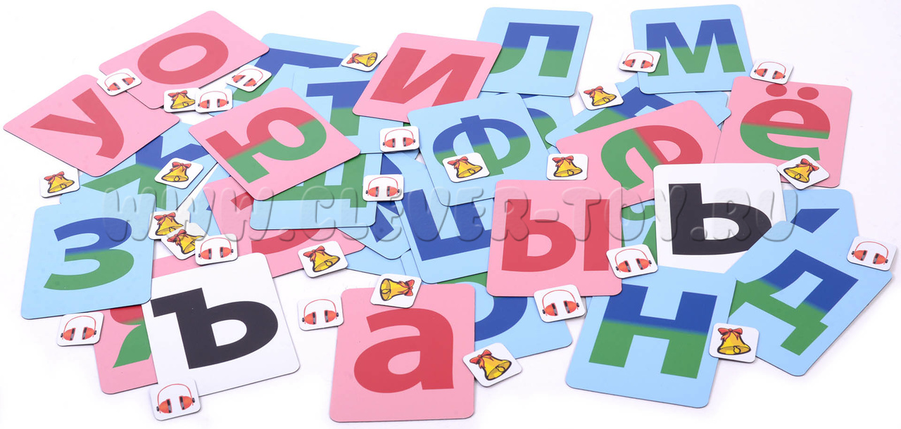 В комплект входят 33 магнитные карточки с буквами размером 6 см на 8 см, а также карточки с колокольчиками и наушниками. Размер доски в собранном виде составляет 140 см на 19 см.