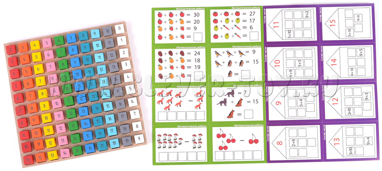 С этой замечательной игрой математическое развитие (обучение устному счету, укрепление навыков выполнения действий сложения, вычитания, сравнения чисел) сопровождается улучшением зрительной памяти, восприятия, логического мышления, концентрации внимания, мелкой моторики.