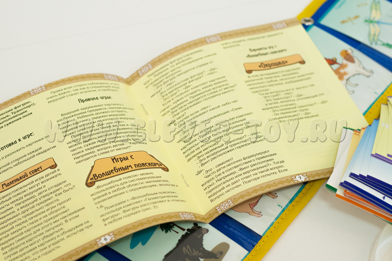 В наборе также содержится подробная инструкция-подсказка для родителей с подробным описанием хода игры и вариантами игр с набором («Кто где живет», «Угадай по функции», «Молчанка», «Чем больше, тем лучше», «Смешилки», «Что изменилось» и другие).