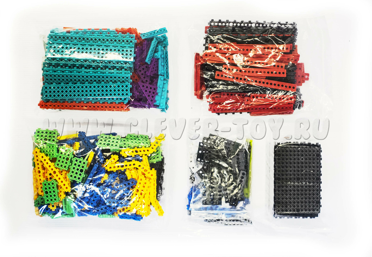 Ресурсный набор "ПЛАСТИК" состоит из пластиковых деталей: балок разных форм, уголков, пластин, дуг, осевых блоков. Данный набор расширяет конструкторские возможности всех ресурсных наборов линейки Роботрек.