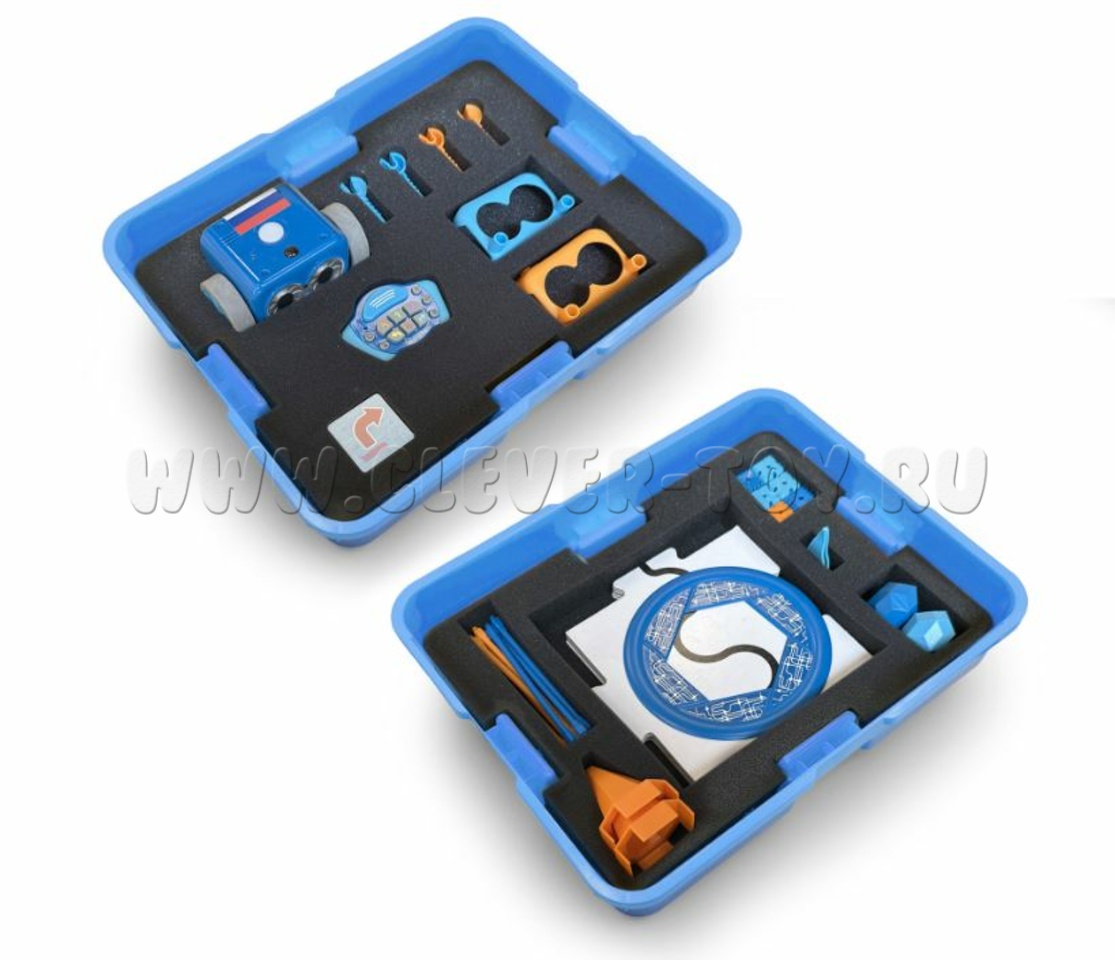 - 27 аксессуаров для создания препятствий на пути робота: 8 палочек, 12 кубов, 2 конуса, 2 флажка, 2 мяча и ворота.