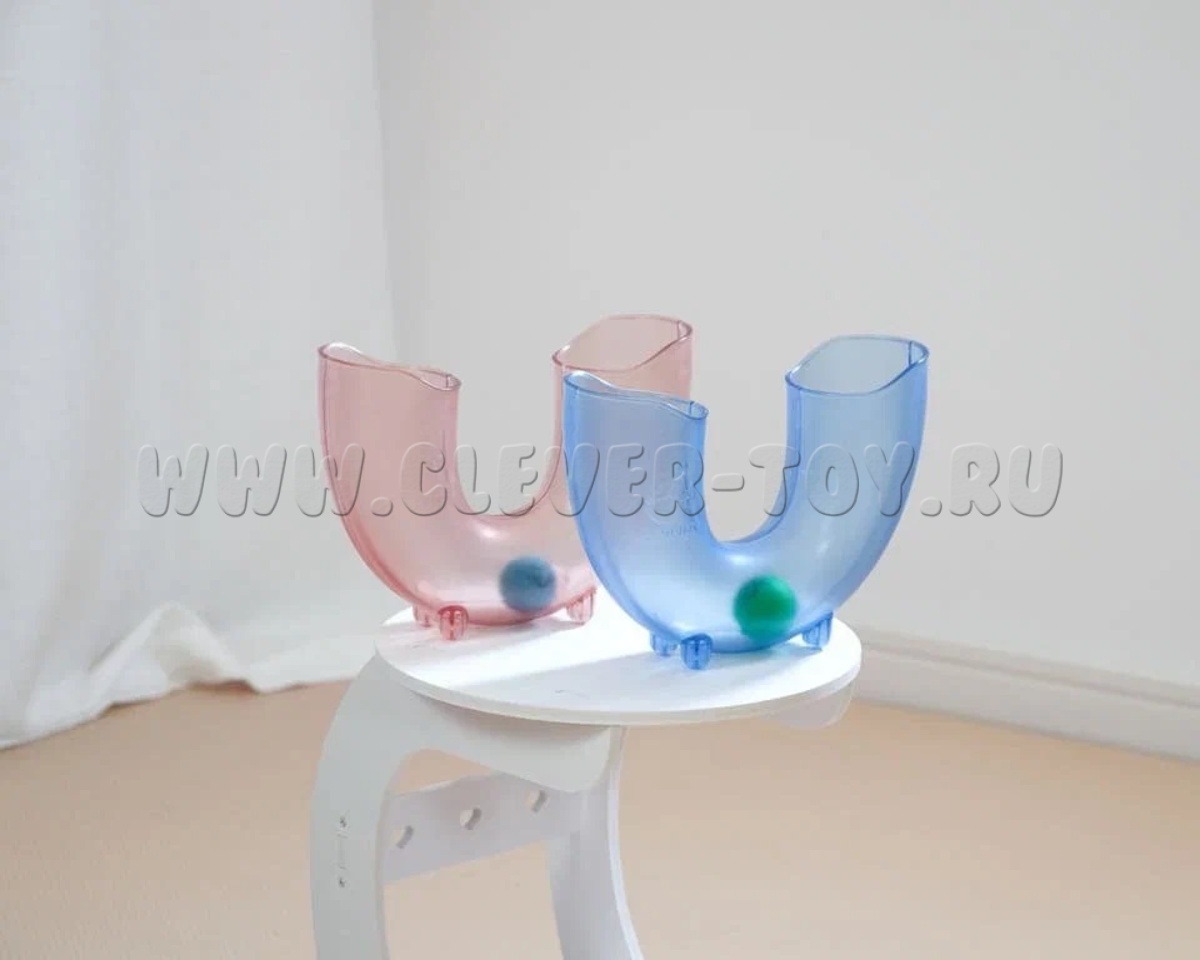 В набор входит розовая труба U-образной формы 23,5 х 8, х 17,5 см. и три шарика.