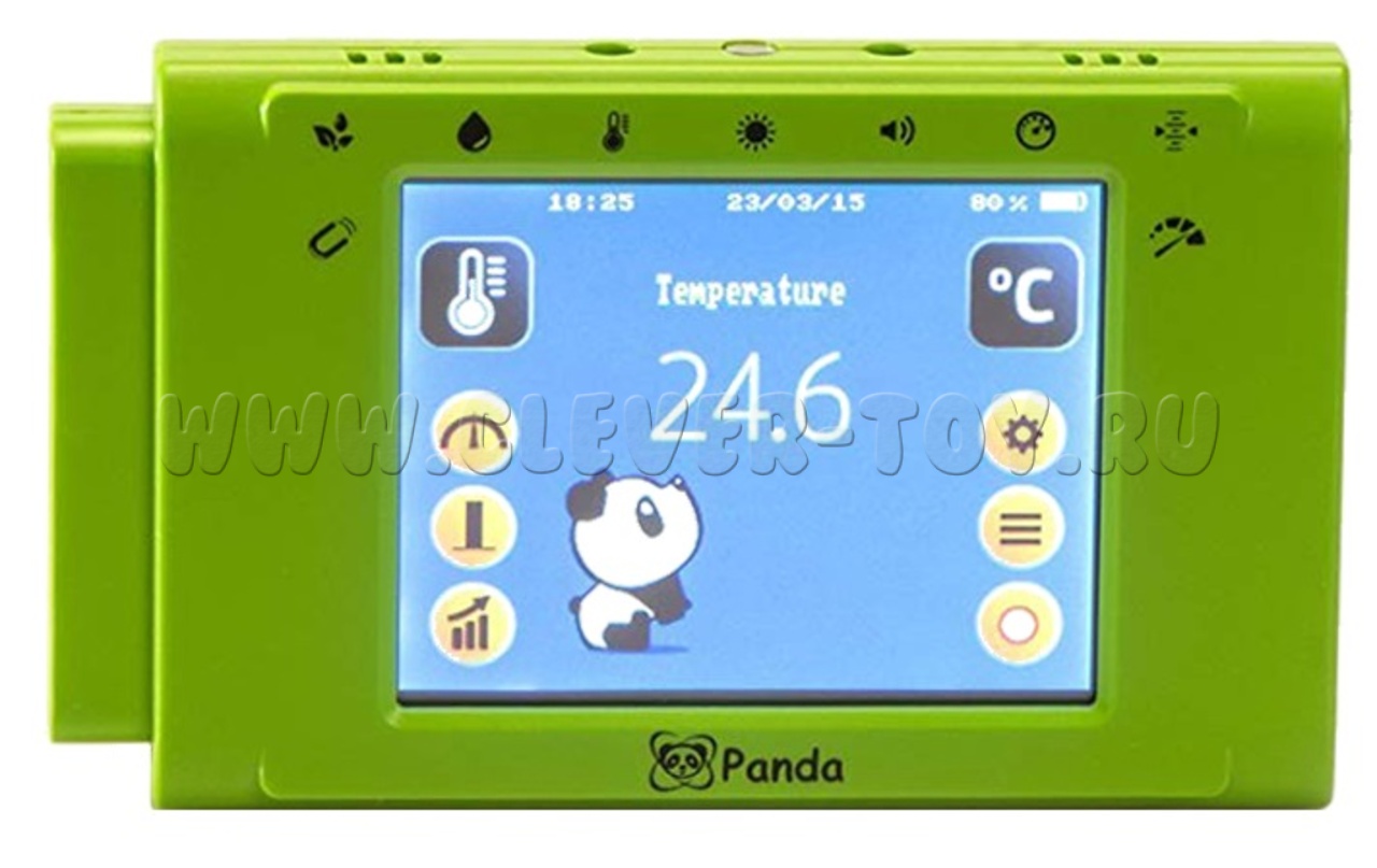 Цифровой измерительный модуль (мультидатчик) PANDA представляет собой автономную, полностью готовую к использованию мобильную естественнонаучную лабораторию с цветным сенсорным дисплеем, процессором, памятью, аккумуляторной батареей и 9-ю встроенными цифровыми датчиками: температура окружающей среды, свет, звук, барометр, высота над уровнем моря, влажность, точка росы, ускорение, магнитное поле. Мобильная лаборатория PANDA специально разработана для начальной школы и дошкольного образования, учитывает психофизиологические особенности детей дошкольного и младшего школьного возраста, может успешно использоваться в рамках учебной, внеурочной, проектной и исследовательской деятельности, как в классе, так и вне помещения. Модуль PANDA интегрируется со всей линейкой цифровых измерительных модулей PROLog, поэтому комплект может быть дополнен для расширения потребительских возможностей. В состав комплекта включен ЦИМ PROLog "Температура", позволяющий измерять температуру жидкостей, сыпучих сред и других материалов.