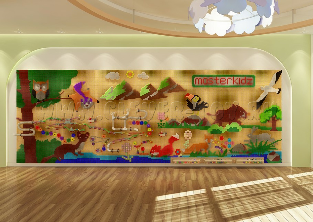 STEM-стена имеет возможность установки развивающих образовательных комплектов Masterkidz, таких как колышки, сокровища, шнуровки, винты, кинетические треки, развивающие панели и множество других интересный пособий, которые обеспечивают постоянные новые задачи и позволяют детям ежедневно получать новый опыт и совершать новые открытия. Таким образом обычная стена превращается в супер-игрушку для веселого и интерактивного обучения!
